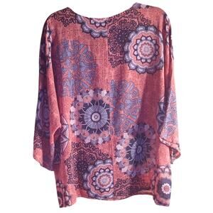 Beyond Capri, Made in Italy, 100% Cotton Gauze, Dusty Rose Tunic, Women's One Size. Unique Geometric Design in Blue Black and Pink. 3/4 Length Sleeve.