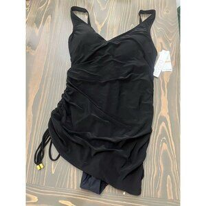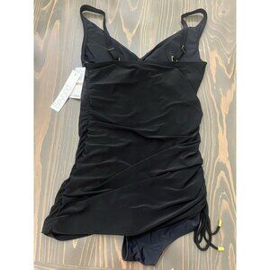 Beyond Control Tummy Control Draped Black Swim Dress Swimwear 12 NWT