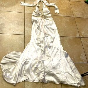 Beyond Division by Jovani Sz 8 White saten look beaded open back halter mermaid style dress white color long