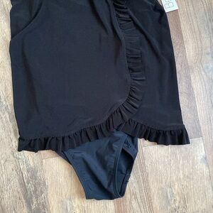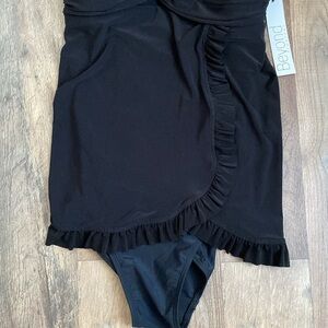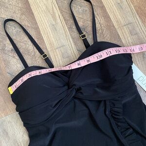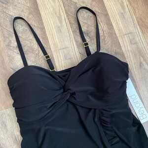 Beyond One Piece Twist Knot Ruffle Front Swimsuit Black Size 10