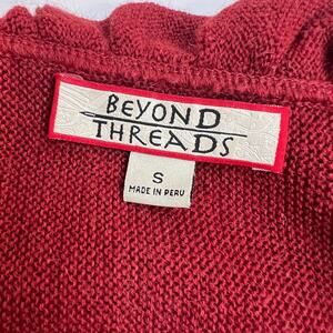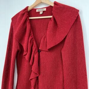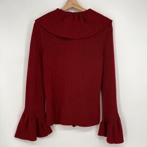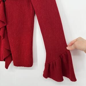 Beyond Threads Alpaca Wool Blend Cardigan Sweater Small Red Ruffle Bell Sleeves