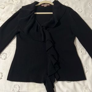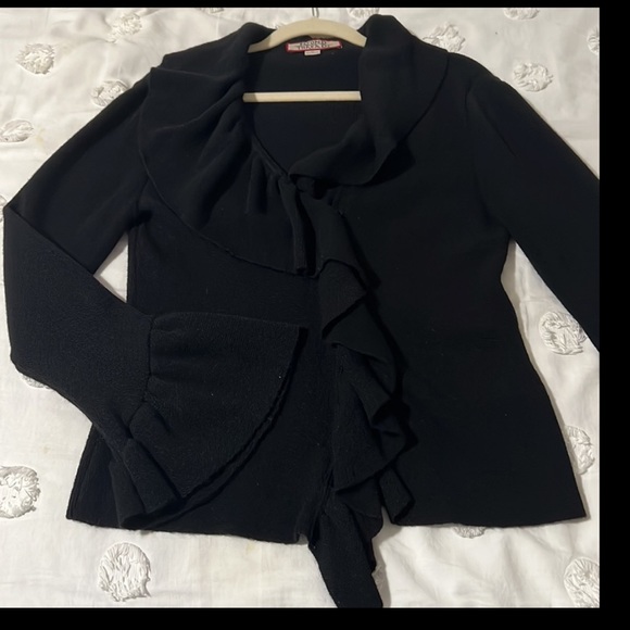 Wool Alpaca Ruffle Cardigan Sweater with bell cuffs
