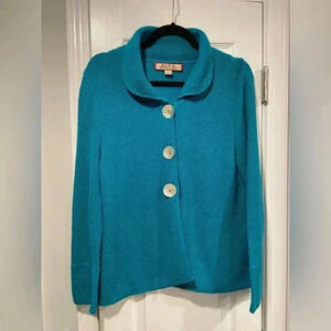 Beyond Threads Turquoise Knit Collared Cardigan Large Shell Buttons Size M