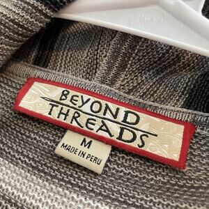Beyond Threads Women's Gray Striped Shawl Open Front Cardigan Size M Boho Gypsy
