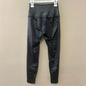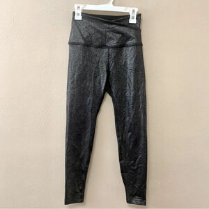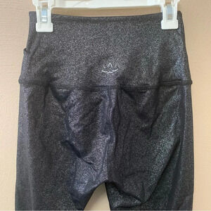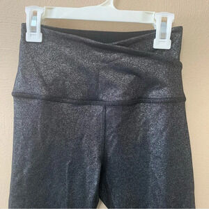 Sprinkled with metallic sparkle, these eye-catching leggings with a high, crossover waist will inspire you to strike your best pose.