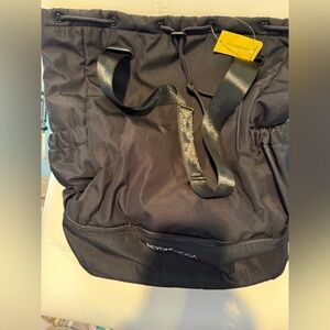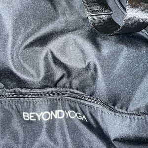 Beyond Yoga black backpack. Drawstring and snap closure. Separate space on the bottom for shoes. Measures approximately 21.5 inches x 15.5 inches. New with tag.