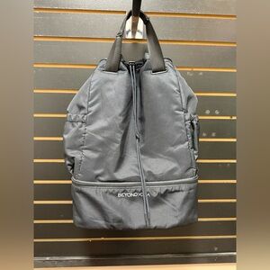 Stylish and functional, this Beyond Yoga black convertible tote bag doubles as a backpack, perfect for the gym, work, or travel. Features a spacious main compartment with drawstring closure, side pockets for water bottles, and a separate zippered bottom compartment—ideal for shoes or sweaty gear. Adjustable backpack straps and sturdy tote handles make it versatile for any outing.