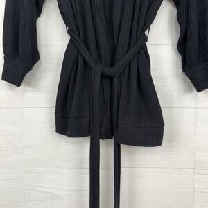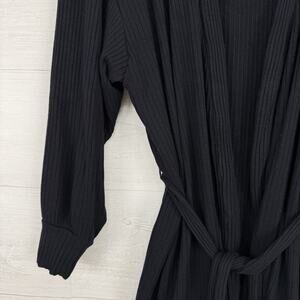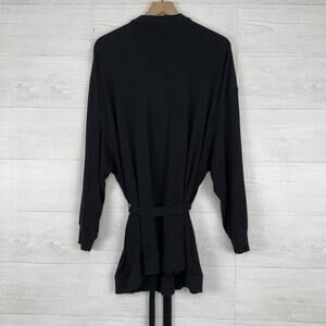 Beyond Yoga Coffee Run Ribbed Belted Cardigan Women 2X Black Rayon Lounge Cozy