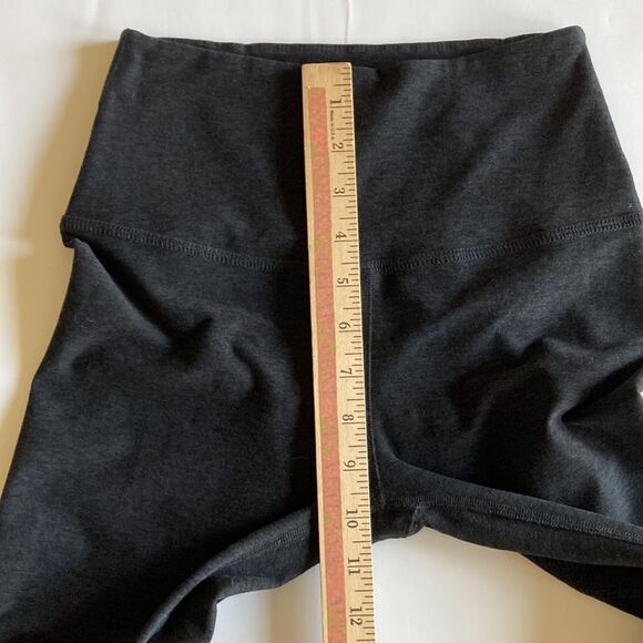 Beyond Yoga Cross It Back Spacedye 7/8 Leggings -Color: Charcoal gray/ Black -Elastic waistband provides a comfortable fit. -Super soft Spacedye fabrication. -Midi-length leggings with lace up detailing at back of each cuff. -4-way stretch with great shape retention. -Quick-drying. -Moisture-wicking. -No outside seams provide a flattering fit. -Excellent pre-owned condition, no flaws. Size Small Approximate measurements lying flat: Waist:10.5" Hip: 13.5' Front rise: 10" Inseam: 22.5"
