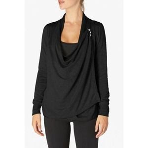 Beyond Yoga Draped Wrap Long Sleeve Three Button Cardigan Top Size XS Black