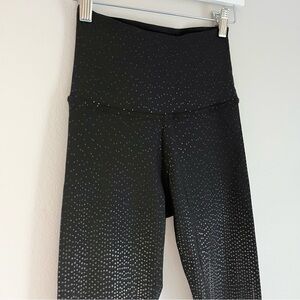 Beyond Yoga women’s drip dot high waisted midi leggings in black and gold metallic color/pattern. Size small.