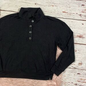 Beyond Yoga East Coast Button Black Pullover Sweatshirt. This sweatshirt is in great used condition
