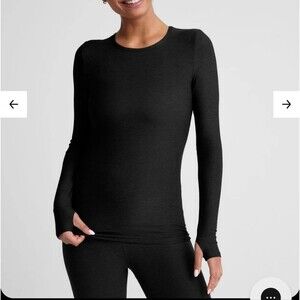 Beyond Yoga Featherweight Classic Crew Darkest Night Spacedye Pullover Top