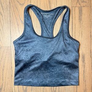 Beyond Yoga First Class Cropped Racerback Tank in Distressed Sheen Navy Blue Women's Size X-Small