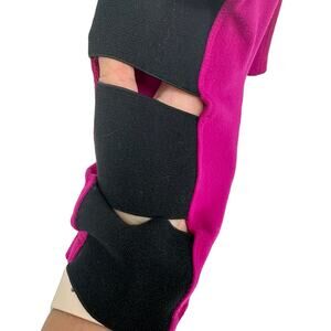 Bright fushia color with wide stacked black elastic bands down the outside of each year