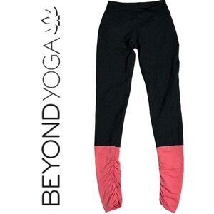 Beyond Yoga Gray And Pink Colorblock Ruched Leggings