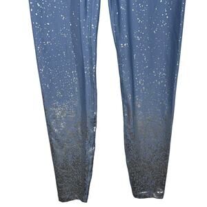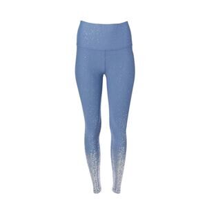 Beyond Yoga High Waist Alloy Ombre Midi Legging Serene Blue Silver. Whether you're lunging or lounging, these flexible leggings keep you moving in athleisure style with their shimmering speckle design and secure high-waist fit. Take some glamour to the gym with you. These Beyond Yoga leggings are cut to a cropped midi length and fashioned with a glittery ombré design.