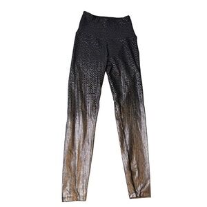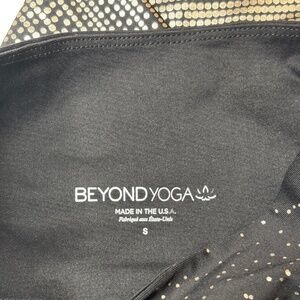 *Used* black & gold Beyond Yoga leggings in a size S. Features ombré golden drip dot design.