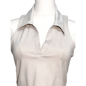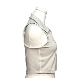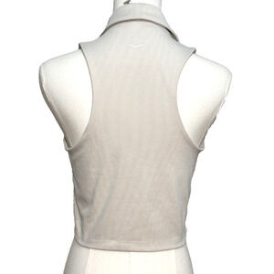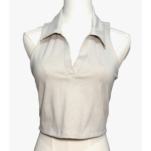 Beyond Yoga Cream Heather Rib Prep Cropped Collared V Neck Top Medium