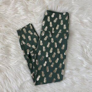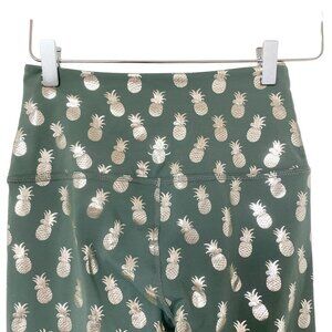 • Sage Green Color/Metallic Pineapple Print/High Waist/Cropped/Stretchy