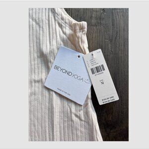 Beyond Yoga New Well Traveled Ribbed Midi Dress M Ivory Cream Sleeveless Stretch NWT New With Tags