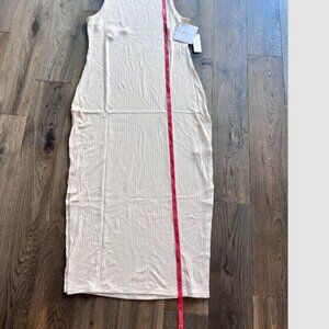 Beyond Yoga New Well Traveled Ribbed Midi Dress M Ivory Sleeveless Stretch NWT
