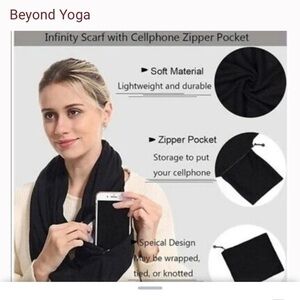 Beyond Yoga Pocket Infinity Black Scarf Lightweight, Soft Fabric Hidden Zipper