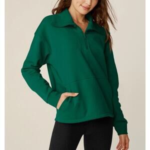 Beyond Yoga Quarter Button Trek Pullover Sweatshirt Womens XS Green Pocket