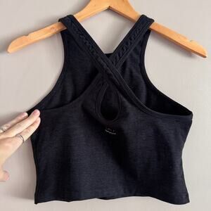 Beyond Yoga Spacedye Dark Gray Studio Cropped Tank Top Cross Back Size Medium
