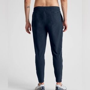These are the Beyond Yoga Men’s Spacedye Take it Easy Pants in the color Nocturnal Navy in a size men’s small. Described as slim fitting athleisure pants with a tailored yet relaxed fit. Drawstring and pockets, with the back pocket featuring a zipper. Excellent condition.