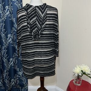 Good, preloved condition. Beyond Yoga Striped Button Front Hooded Cardigan Pockets Oversized. Shades of gray. Open knit. Drop shoulder.
