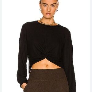 Beyond Yoga Top Womens Small Twist Of Fate Crop Shirt Black Sweatshirt Q