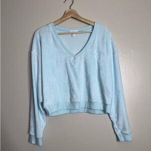 Beyond Yoga Tropez Pullover Tropical Waters Blue Terry Cloth Medium Sea Foam