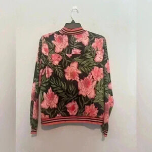 Beyond Yoga True Stripes Floral Bomber Jacket Lightweight Women Small