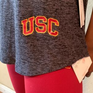 USC logo poly blend, exceptionally soft and lightweight fabric. Cutout detail with crisscross straps.