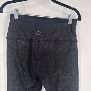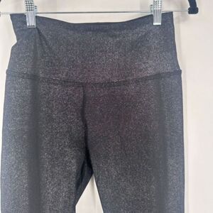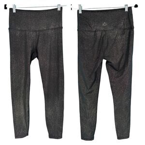 Beyond Yoga Women's Glitter High Rise Ankle Leggings Silver Metallic Black Large