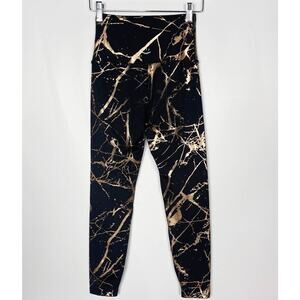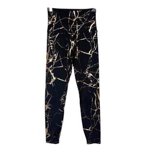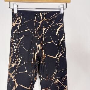 Beyond Yoga XS Black Gold Lost Your Marbles Metallic Print Leggings High Waist