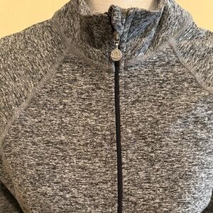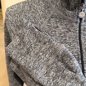 Beyond Yoga black/white marbled jacket with thumb holes. Has a really cute peplum in back.Great condition. Size medium (I think it runs on the smaller size).