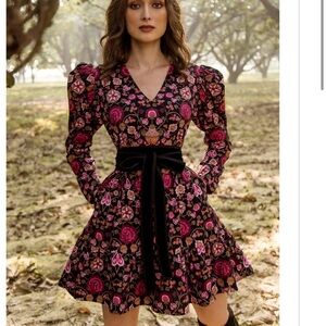 The dark pink and red mixed with the black is perfect for heading into this time of the year. This dress is perfect for wherever you may be! From Florida heat you have the short dress, while up north you still have the long sleeves.