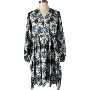 Beyond by Vera Lara Dress Wildflower Blue Floral Boho Tunic Size S Missing Belt