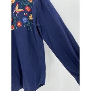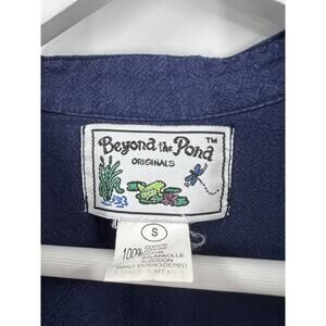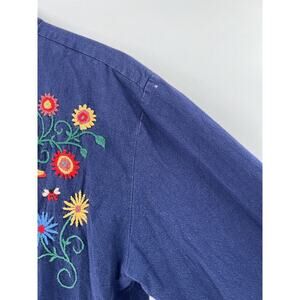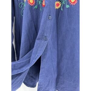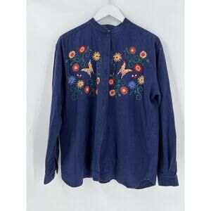Beyond the Pond Vintage Shirt Womens Small Blue Button Up Floral Embroidered