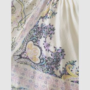 Comfy country or brilliant BOHO this creme pink, purple paisley print top offers style and ease of wear. Excellent LN condition. No signs of garment distress.