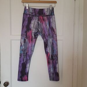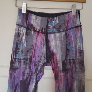 Beyond Yoga Lux Foxing 3/4 Leggings Size S Purple Pink Grey Abstract