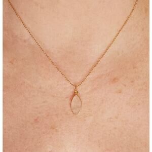 This handmade necklace features a faceted clear matte quartz marquise-shaped pendant, beautifully set in a sleek gold-filled bezel, approximately 1 inch long. The pendant hangs elegantly from a delicate 14k gold filled 18 inch micro-bead chain, adjustable for a perfect fit. The necklace and gemstone are minimalist and simple yet striking. The chain is adjustable for versatile wear, making it ideal for layering or wearing solo. Enjoy free shipping on this stunning, handcrafted necklace—perfect for any jewelry collection or as a thoughtful gift. Free shipping excludes Alaska, Hawaii and international.