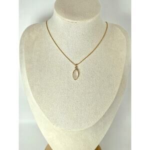 Bezel Clear Faceted Quartz Marquise Necklace Pendant Gold Filled Bead Chain