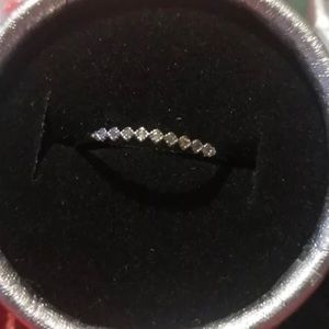 Bezel Semi-eternity Round Crystal Stone silver tone ring. Made of copper alloy ring.
