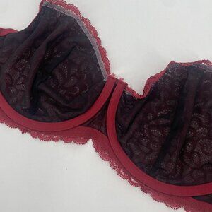Bezier Size 34E Gramercy Lace Underwire Bra Burgundy Semi Sheer TR11142LF2