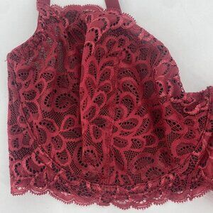 Bezier Size 34E Gramercy Lace Underwire Bra Burgundy Semi Sheer TR11142LF2. Gently preowned. runs small in the cup size. closer to a C