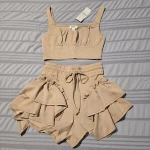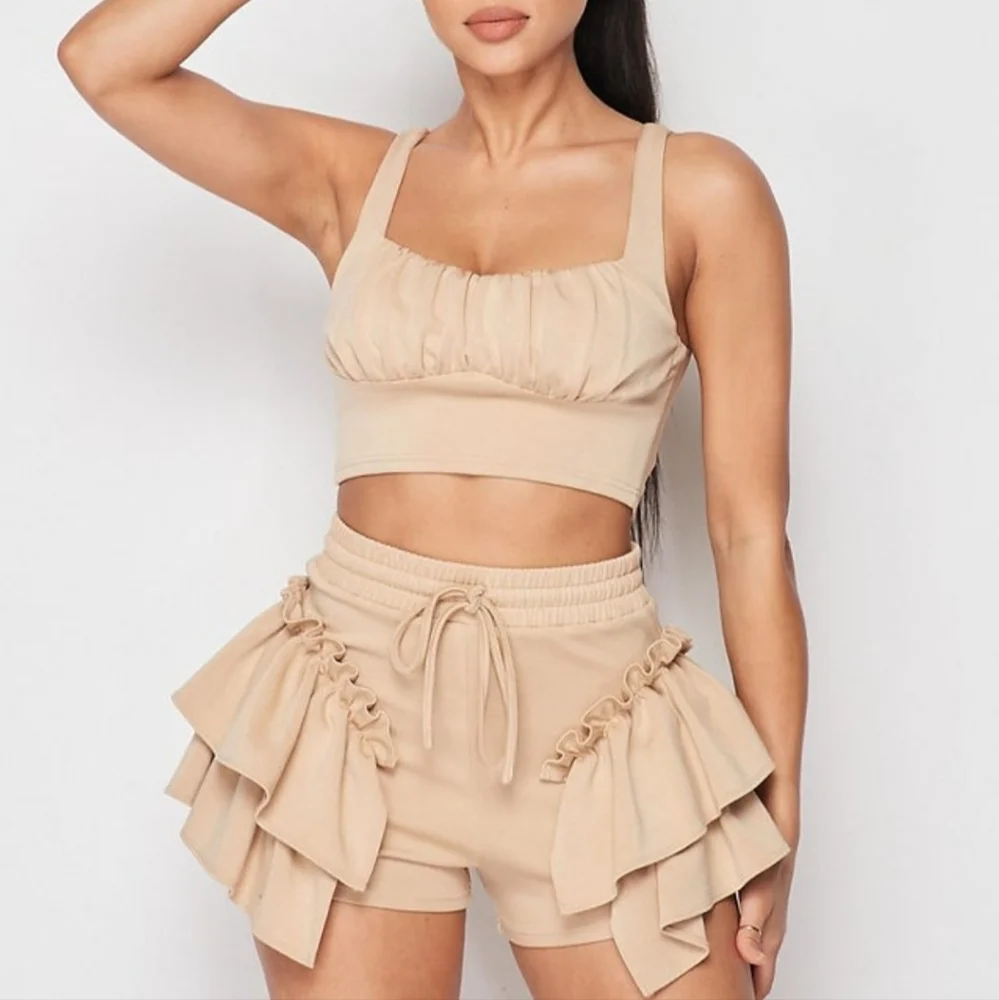 Nude Ruffles N Frills Cropped Tank and Shorts Set