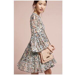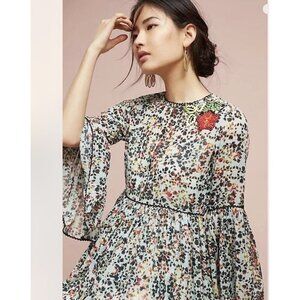 Bhanuni by Jyoti Anthropologie Libra Embroidered Tunic Dress Size 4 Green Floral